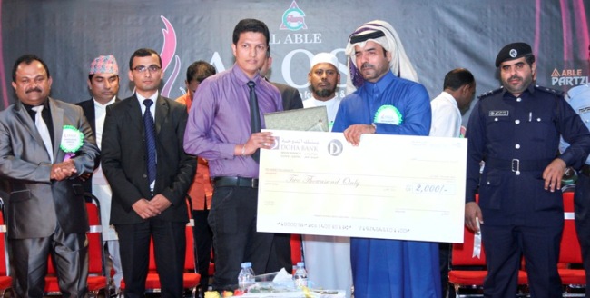 कम्पनीमा काम गर्ने ६ सय भन्दा बढी कामदारहरु मध्यबाट ६ जना उत्कृष्ट कामदार छनोट भएको हो । इश्वी सम्बतको नयाँ वर्ष २०१५ को अवसरमा अल एवल टेडि्रङ्ग एण्ड कन्ट्रयाक्टिङ् कम्पनीमा कार्यरत कामदारहरुको साझा संस्था एरोसले आफ्नो वाषिर्कउत्सव तथा नयाँ बर्षको कार्यक्रममा उत्कृष्ट कामदारको अवार्ड प्रदान गरेको हो ।