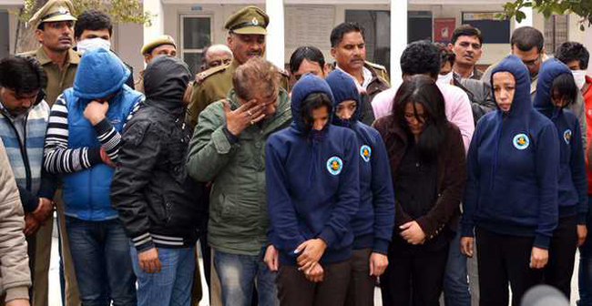 - पक्राउ परेकाहरुलाई सार्बजनिक गर्दै गुडगाउँ प्रहरी । तस्वीर : दैनिक ट्रिव्यून