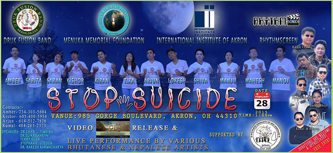 नेपाली मुलका भुटानी कलाकारको योजनामा जनचेतनामुलक कार्यक्रम गर्न लागिएको हो । कार्यक्रममा मनोचिकित्सक, अमेरिकी चिकित्सक, भुटानी नेपाली चिकित्सक, भुटानी नेपाली सम्पूर्ण कलाकारहरुको आगमन हुँदैछ।