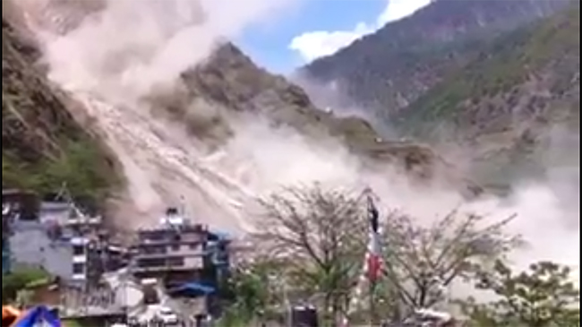 भूइँचालो आउँदा धुञ्चेमा यसरी पहिरो गयो (भिडियोसहित)